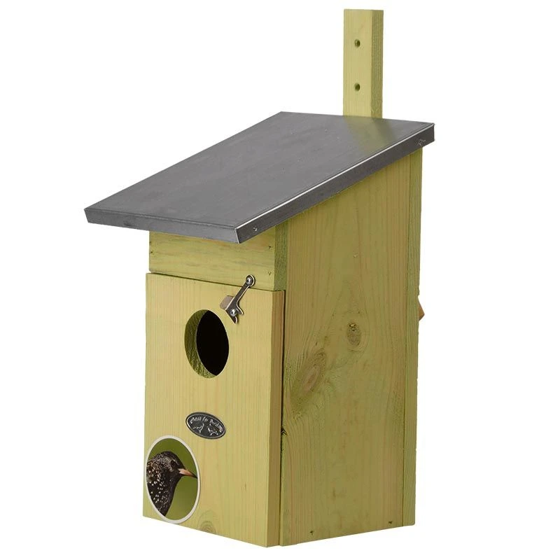 Hoe heerlijk is het om in voorjaar of najaar het rustgevende getjilp van vogels te horen. Maar hoe krijg je de vogels in je tuin? Het is gemakkelijkere dan je denkt. Een vogelhuisje plaatsen is soms al genoeg. In deze mooie licht groene nestkast voelt deze vogel zich echt in thuis. Deze nestkast is uitermate geschikt voor de spreeuw.