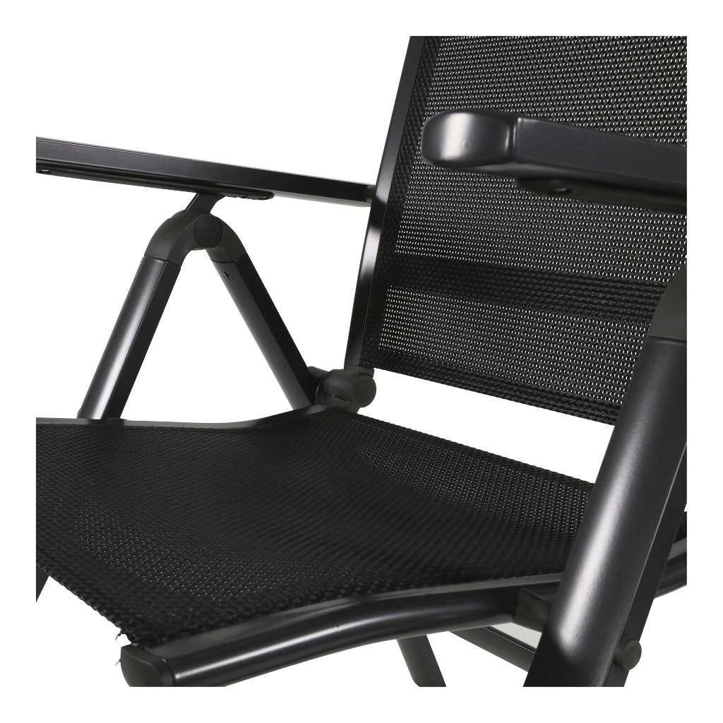 Heerlijke verstelbare tuinstoel. De standenstoel Carino is gemaakt van aluminium en zwart textileen. Door de textilene zitting zit deze stoel heerlijk, en hij is ook nog eens verstelbaar. Heerlijk na het eten stoel achterover en nagenieten van het zomers zonnetje.