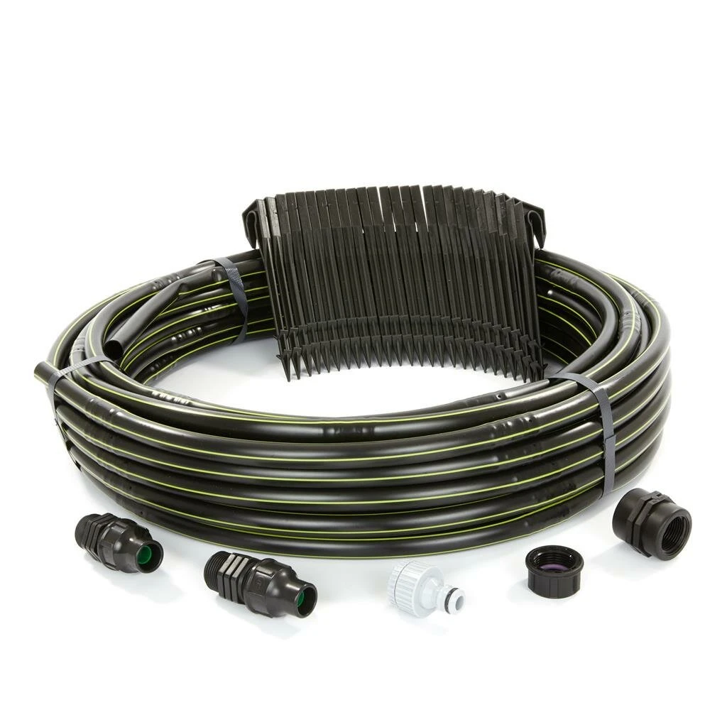 De druppelslang heeft elke 30 cm een druppelaar. Leg de slang langs de wortels of graaf hem in. De druppelslang geeft je planten regelmatig een kleine hoeveelheid water. De gelijkmatige bewatering voorkomt verdamping en verspilling. Zo bespaar je tijd en water. Je border of haag krijgt vanzelf water, terwijl jij alle tijd hebt om zorgeloos van je tuin te genieten. De druppelslang heeft elke 30 cm een druppelaar. Samen geven de druppelaars je planten regelmatig een kleine hoeveelheid water. De gelijkmatige bewatering voorkomt verdamping en verspilling. Zo bespaar je tot wel 70% aan water. De druppelslang is er in twee lengtes: 25 of 50 meter en is eenvoudig in te korten. Leg hem op de grond, dicht bij de wortels van de planten of graaf hem in. O ja, installeren is heel eenvoudig!
