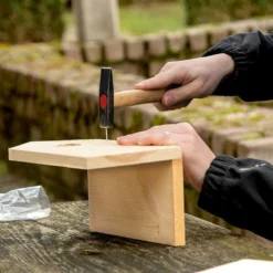 Deze nestkast komt als bouwpakket. Het hout, de spijkers en schroeven zitten allemaal in het pakket. Het enige wat u nodig heeft om de nestkast in elkaar te zetten is een hamer en een schroevendraaier. Je kunt de nestkast zelf nog behandelen met beits of lak. Het hout is duurzaam hout. De nestkast zal erg gewaardeerd worden door de vogels. Helaas lopen de broedplaatsen steeds meer gevaar. De nestkast zorgt dus voor een veilige broedplaats, maar ook voor een schuilplaats. Hang de nestkast hoog genoeg op, 2 meter is de minimale hoogte. Dit nestkastje is zeer geschikt voor koolmezen en kuifmezen. De invliegopening is 32 mm.